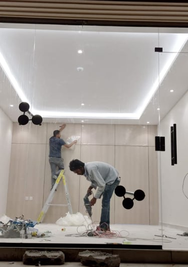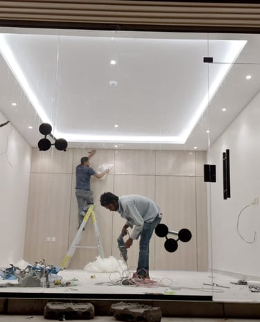 نفيذ أرقى دهانات الحوائط والديكورات الداخلية التي تعكس ذوقك الرفيع، مع حلول إضاءة مبتكرة تبرز جمال التصميم وتفاصيله